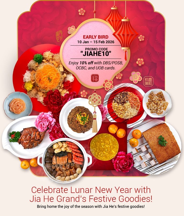 on all Lunar New Year goodies (except Chinese New Year Bundles, Takeaway Set, Spring Blossom Mini Buffet Package and A La Carte Dishes).