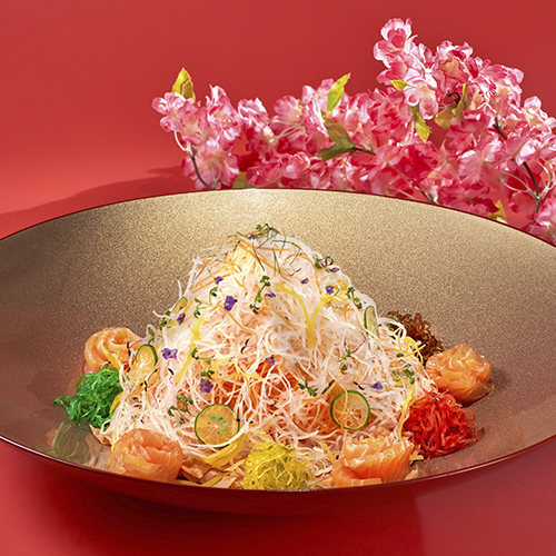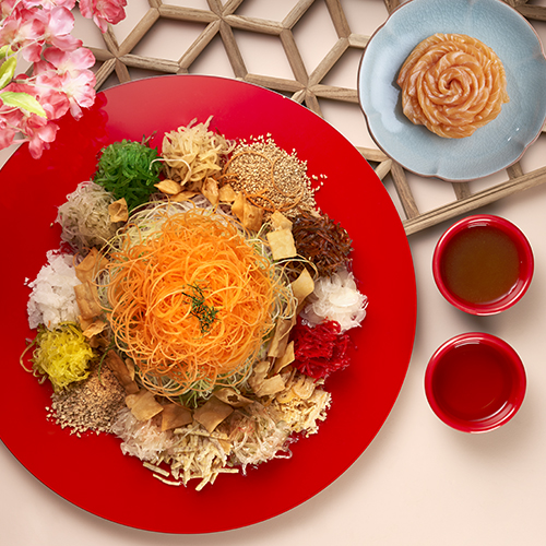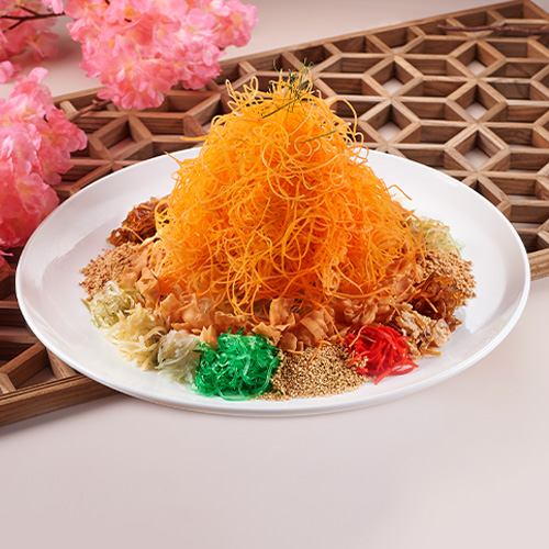 Experience a vibrant explosion of color and flavor this Lunar New Year. Our Yu Sheng is a contemporary masterpiece, featuring the tropical sweetness of honey-gold Jackfruit paired with the delicate saltiness of premium Smoked Salmon. Garnished with fragrant edible flowers, this dish is as beautiful to look at as it is delicious to eat. A refreshing, floral-forward Lo Hei that brings a modern touch to your feast.