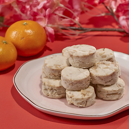 Lunar New Year Food Gifts & Treats, Jia He showcases Classic Almond Cookies (560g, approx. 53 pieces).