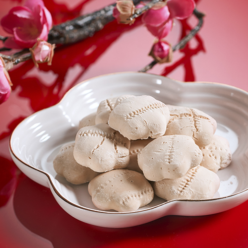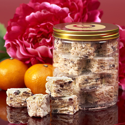 Gallop into a year of sweetness with this delightful blend of chewy nougat and crisp biscuits, symbolizing lunar new year joy in every bite. These milky, handcrafted treats are a must-have for your Chinese New Year platter, offering a unique texture that guests of all ages will love.