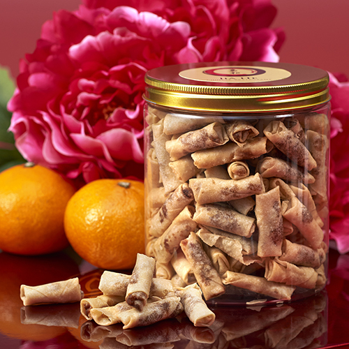 Packaged in a tin, the light, fragrant and crispy Original Flavour Mini Egg Roll (1 tin, approx. 100 rolls) makes a lovely Chinese New Year Food Gift and Treat.